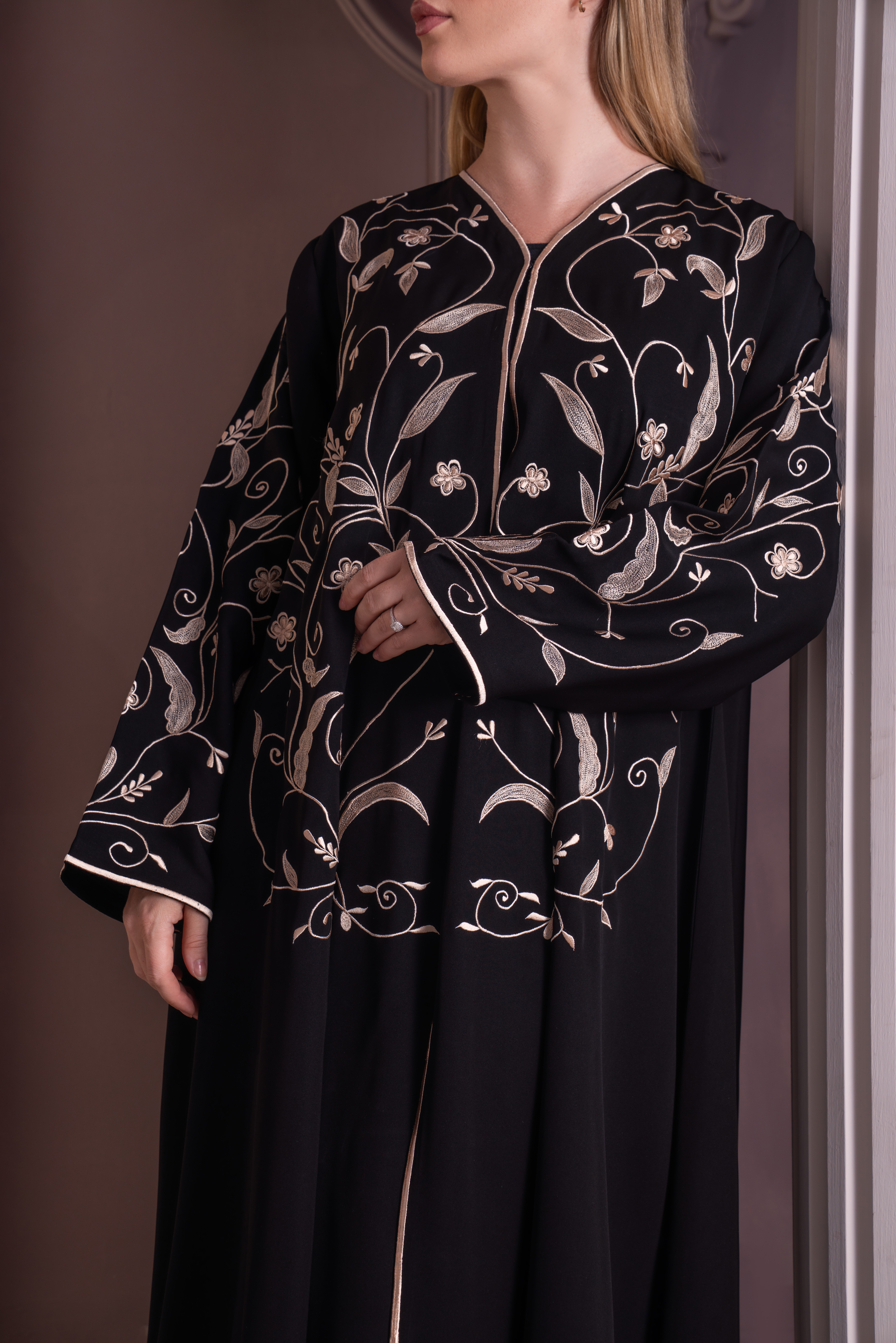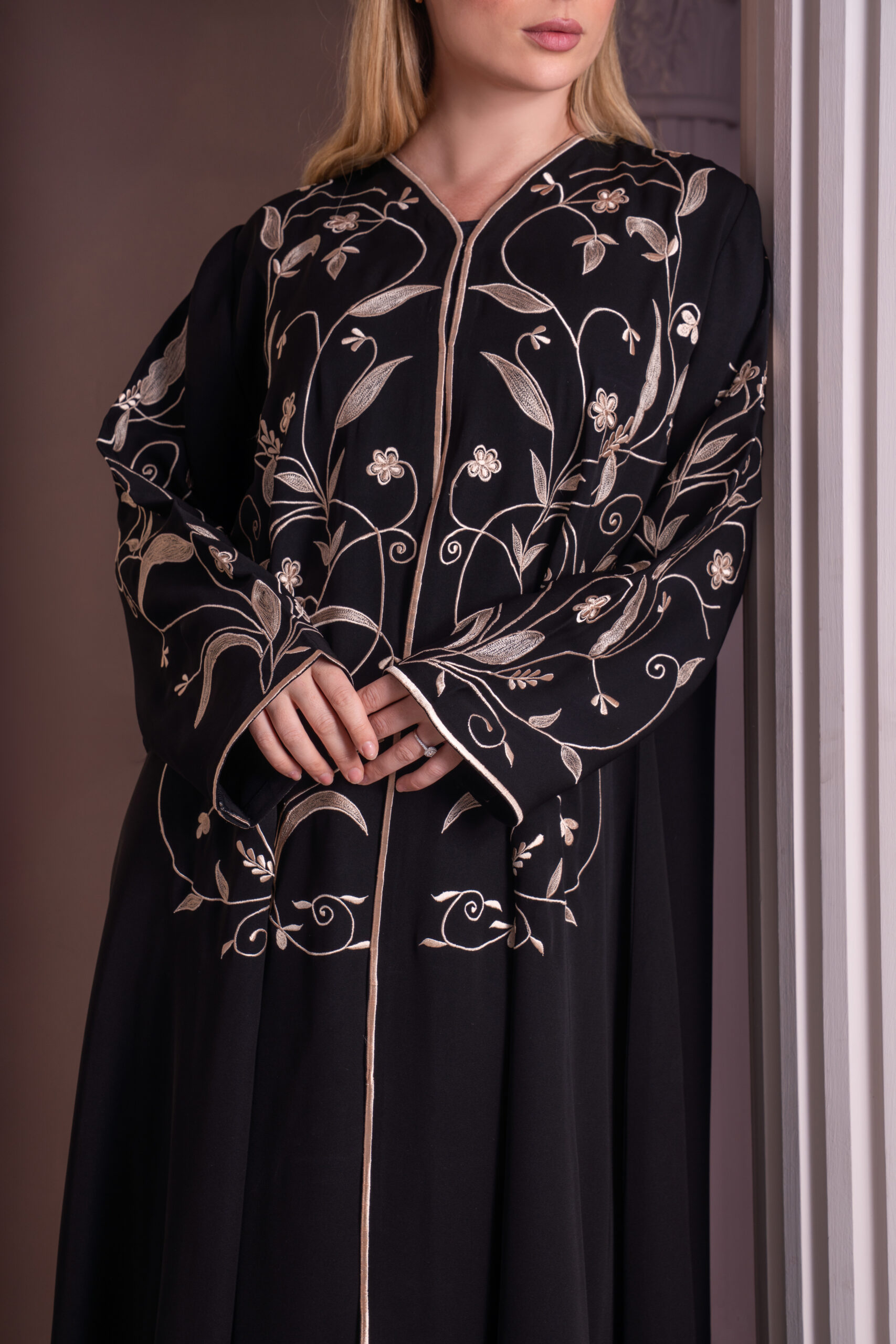 Sophistiquée et élégante, la abaya DAHAB noir est ornée de broderies dorées délicates, ajoutant une touche de luxe et de raffinement. Parfaite pour les occasions spéciales, elle allie simplicité et sophistication avec finesse.