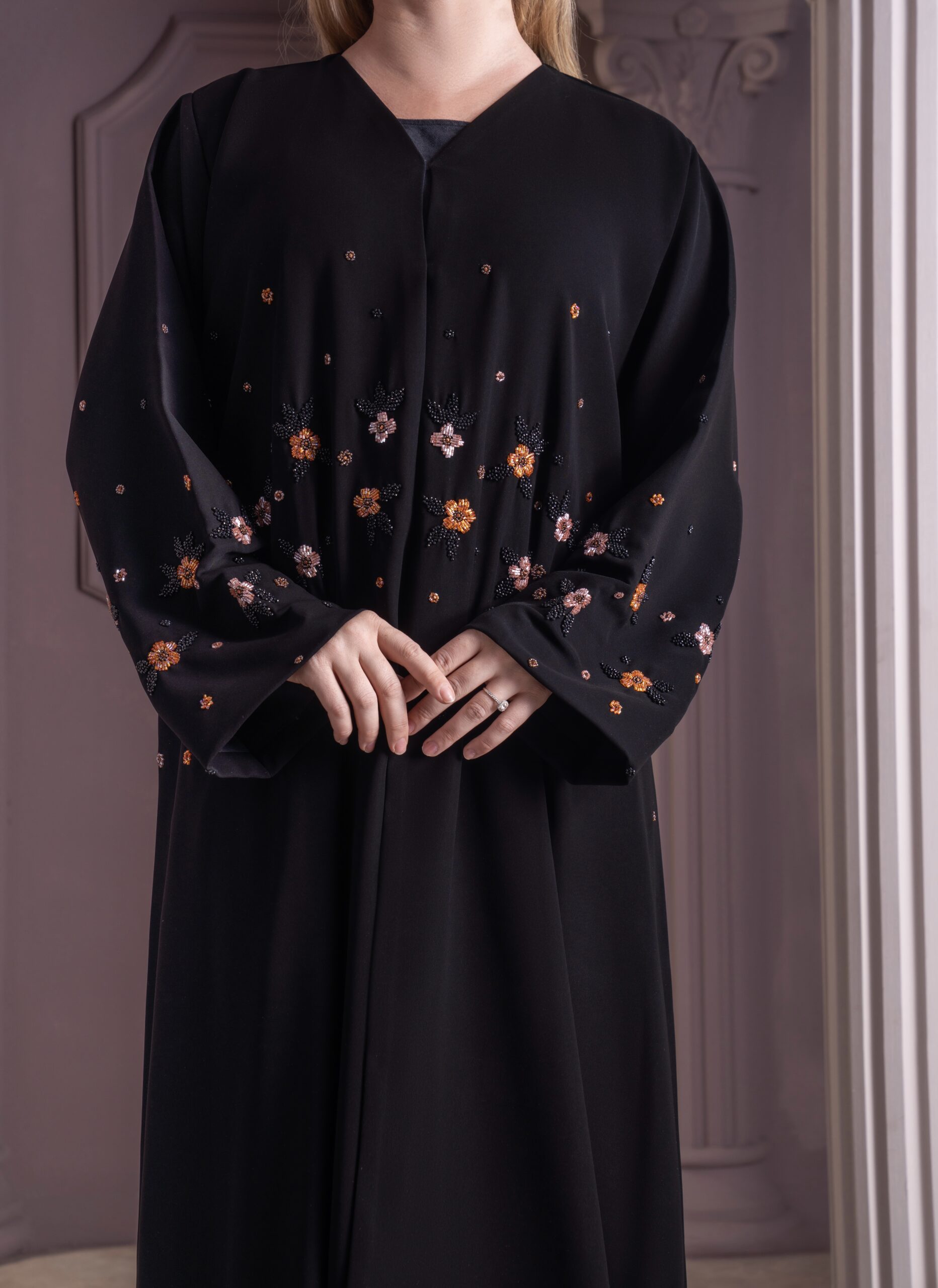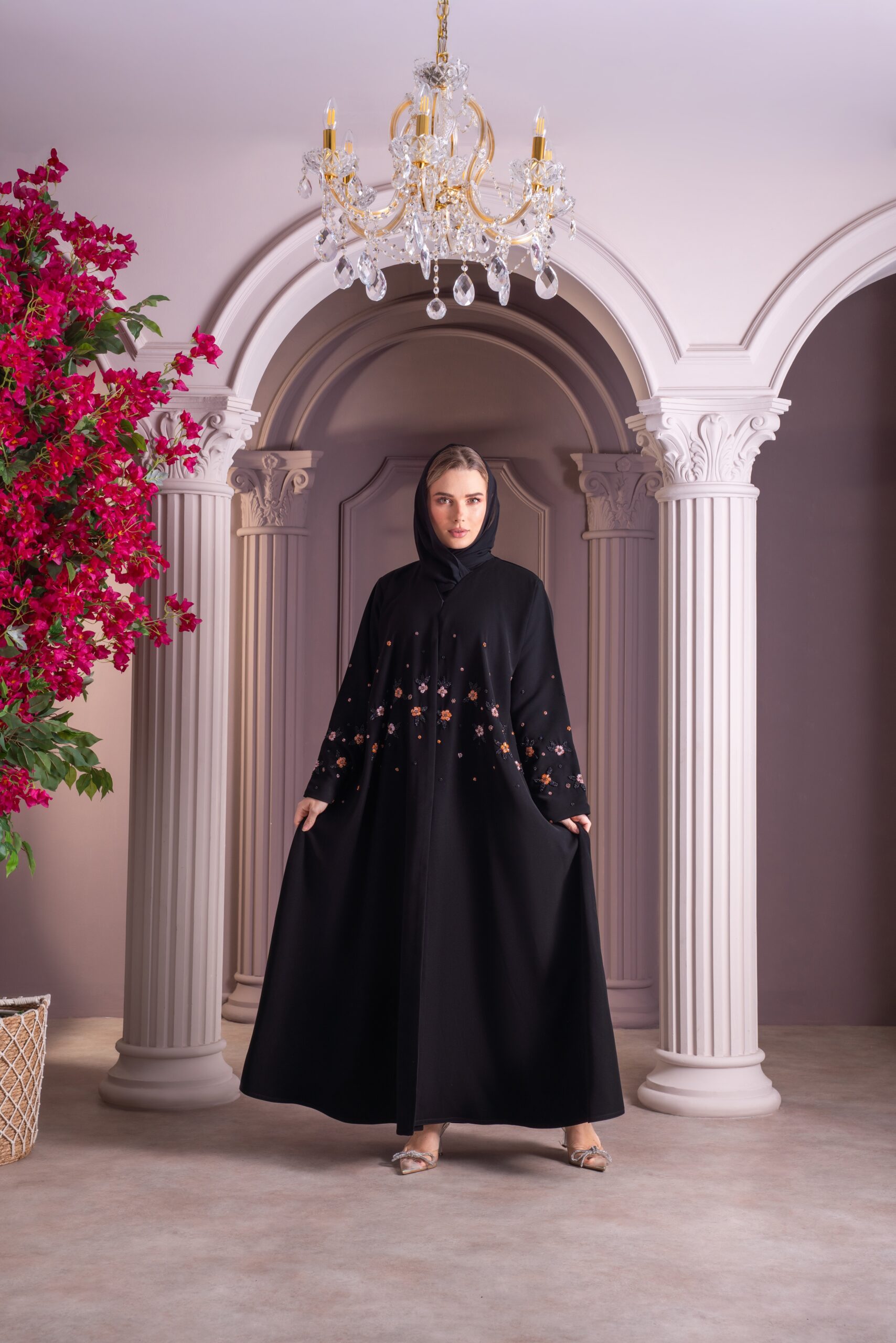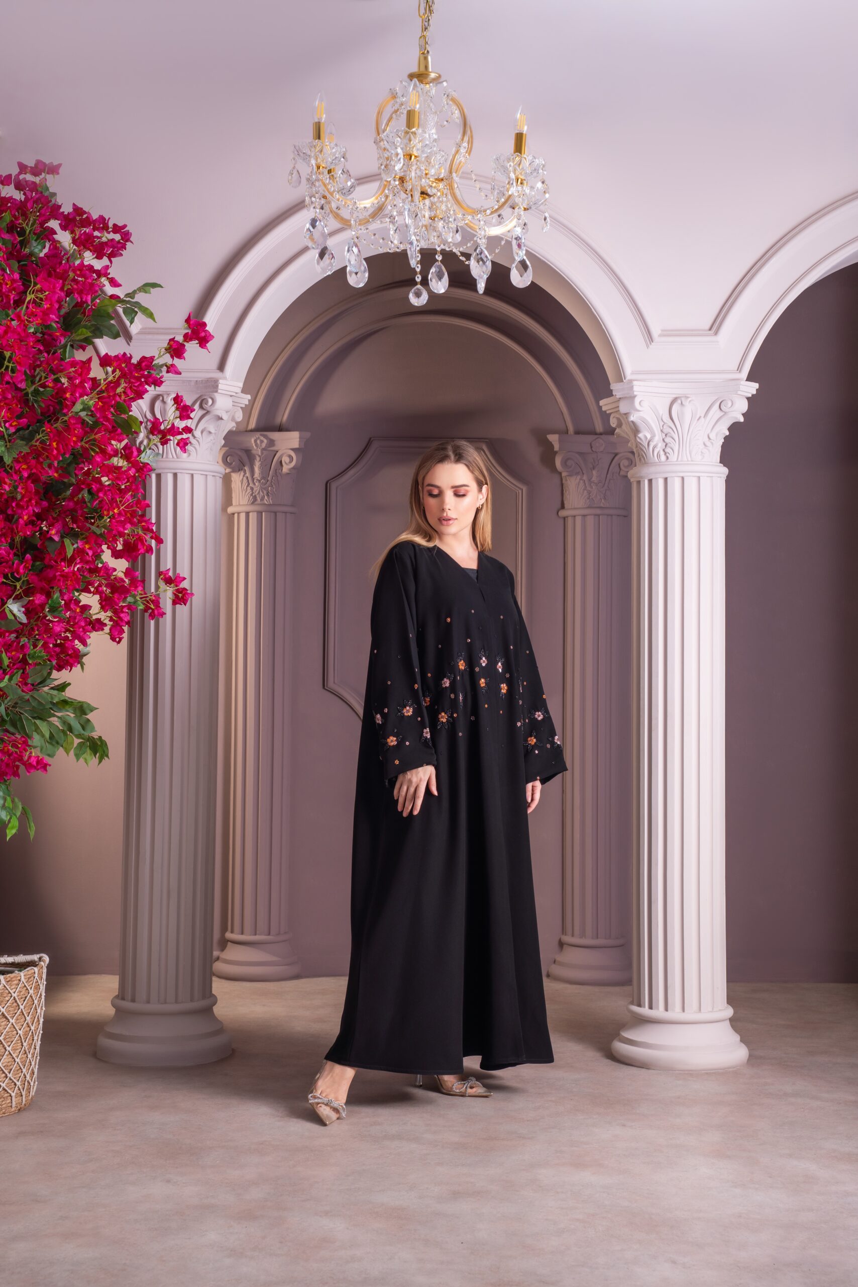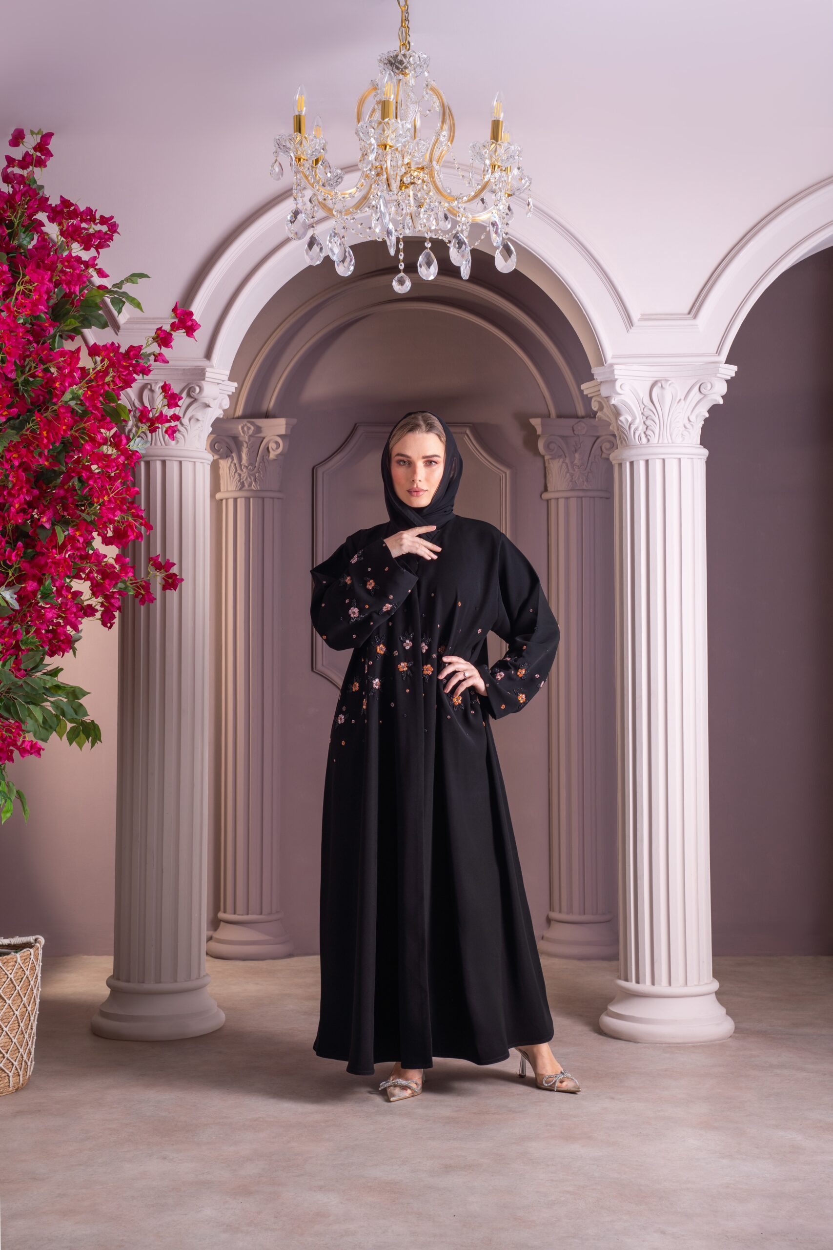 NOUR, cette abaya noir mais scintillante, elle allie élégance et sophistication. Sa texture fluide et légère offre un mouvement gracieux à chaque pas, tandis que le légère brillance ajoute une touche de chic discrète. Une tenue parfaite pour une apparence élégante et raffinée en toute sobriété.